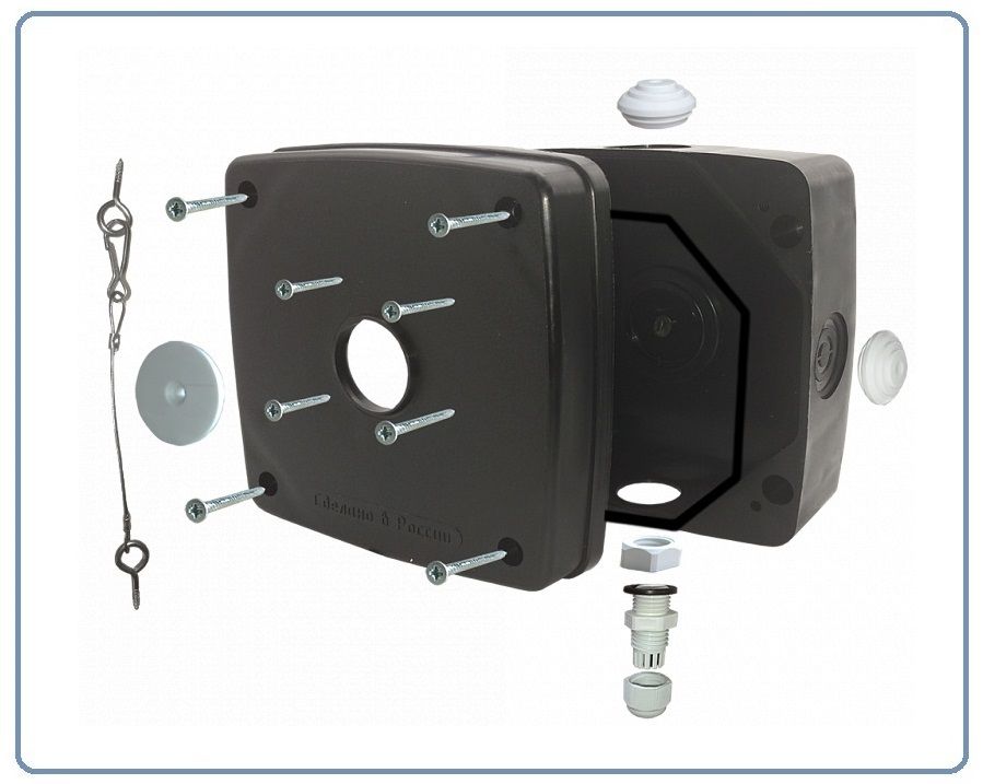 - Высококачественный пластик корпуса с легкостью выдерживает вес нагрузки до двух с половиной килограмм. На монтажную коробку устанавливаются даже тепловизионные видеокамеры, имеющие большой вес