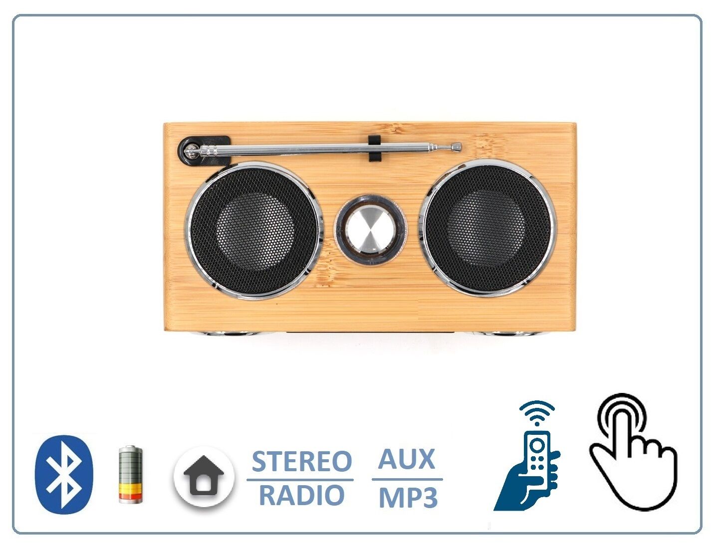 Bluetooth колонка СТЕРЕО, радио FM, с аккумулятором + пульт, для использования в помещении