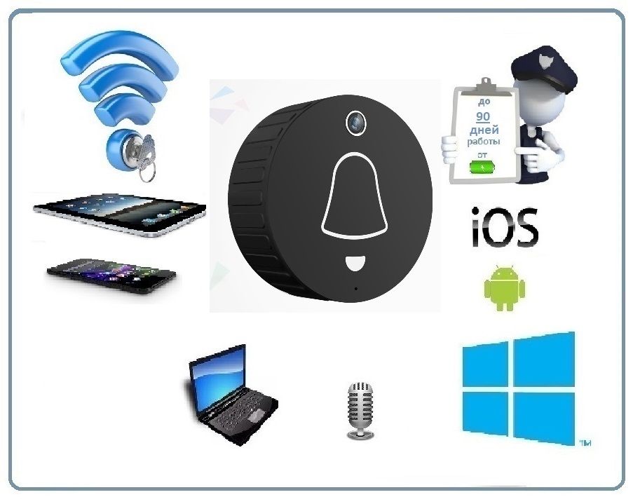 Автономная вызывная панель видеодомофона DOG-DOORBELL работет от встроенного аккумулятора до 90 дней на одной подзарядке. Качество картинки HD 720p. Интерком связь с активным подавлением шума. Ответная часть - ваше мобильное устройство с ОС IOS. Android. Вы принимаете вызов, общаетесь с гостем. Функция открытия электронного замка - не поддерживается.