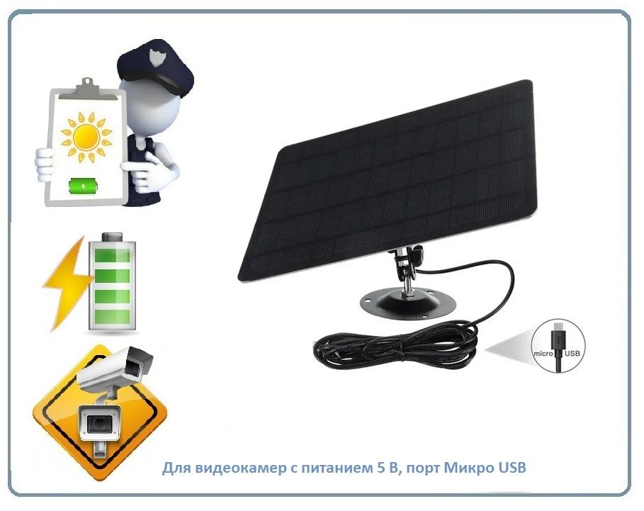 DE/SP01 Black Солнечная панель для видеокамер с питанием 5 В и портом микро USB, для питания слаботочных электронных устройств, интернет вещей и пр.