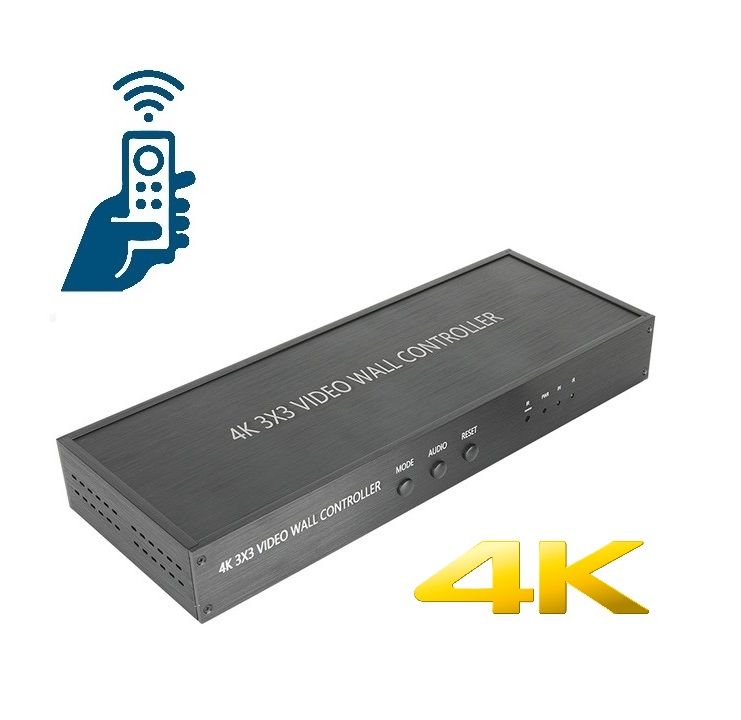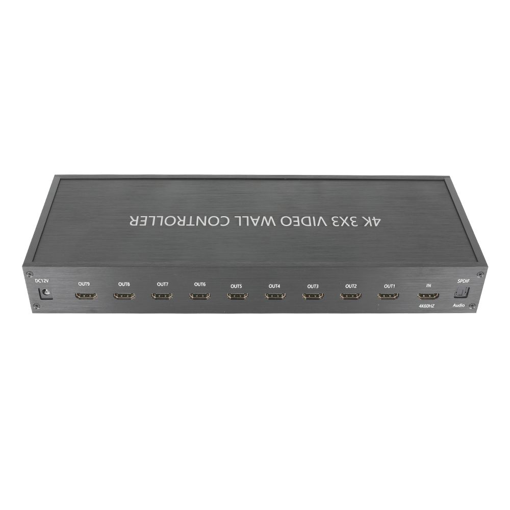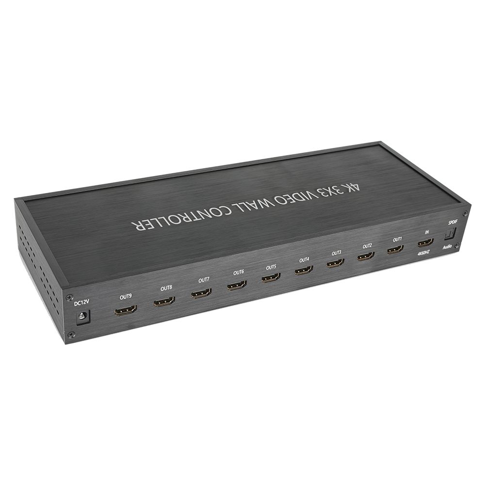 Контроллер видеостены 3x3, поддерживает 1-полосный вход HDMI и 9 выходов HDMI, основная функция чтобы разделить полный сигнал изображения HDMI, HD на 9 блоков и передать на 9 видеодисплеев (использование качестве устройства задней проекции, ЖК-телевизора и т.д.), работает в комплекте с 9 видеодисплеями высокой четкости HDMI.