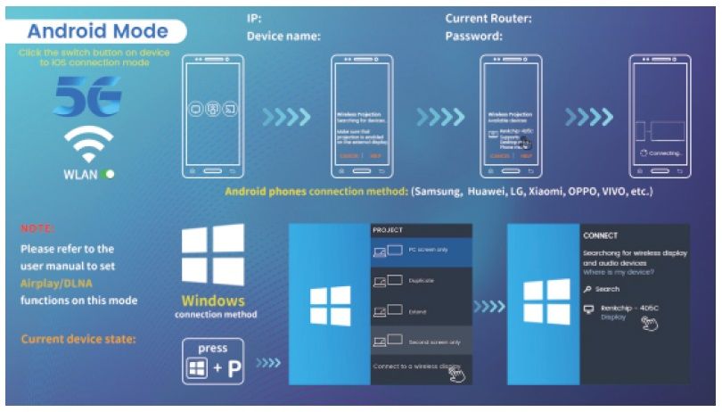 1. Беспроводная передача видео/аудио HDMI через Lip-Snyc с вашего мобильного устройства с ОС IOS/Android. С его помощью пользователи могут легко синхронизировать видео-/аудиосигналы своего телефона и Windows с телевизором.