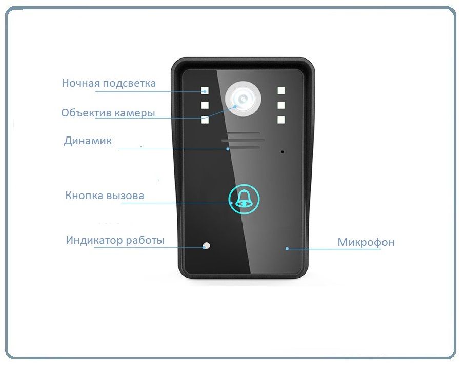 В панель WiFi видеодомофона встроена ночная подсветка, которая включается автоматически в тёмное время суток.