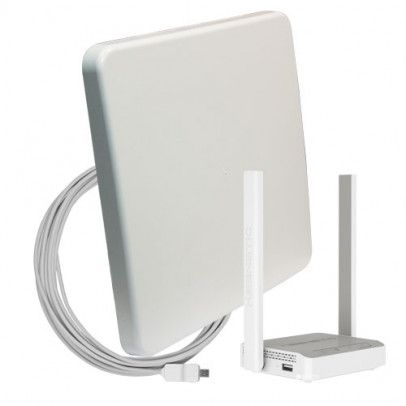 Комплект WiFi 3G/4G - панельная секторная антенна 1700-2700 МГц MIMO 18 дБ со встроенным модемом, USB кабель 10 м, Wi-Fi роутер 2.4 ГГц, LAN-3, кронштейн стеновой