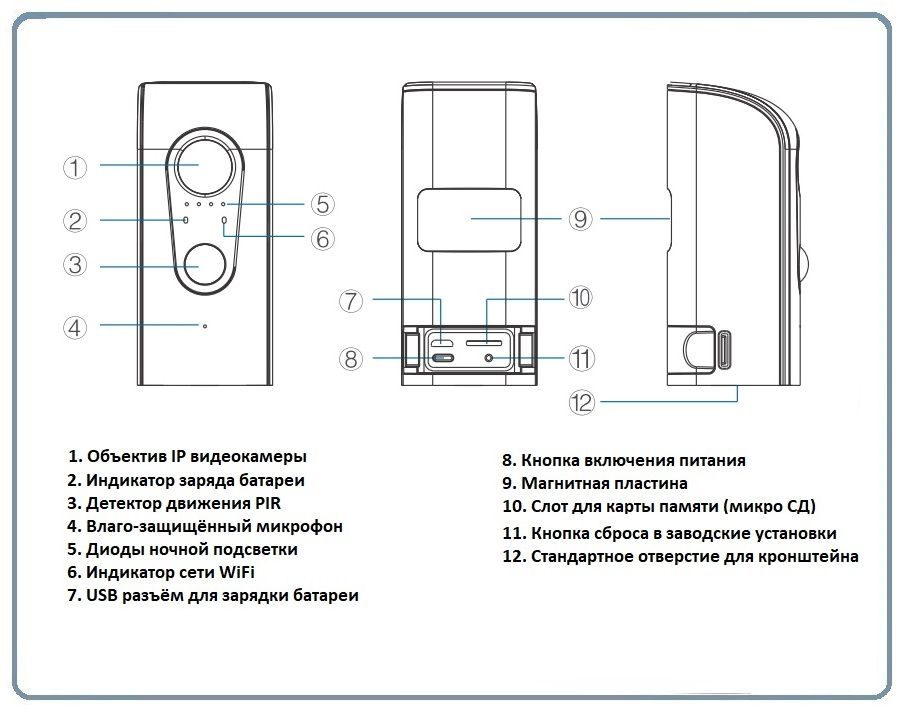 ※ Полимерный литий-ионный аккумулятор позволяет работать IP видеокамере долгое время без подзарядки, на мобильном телефоне можно посмотреть индикатор разряда батареи;