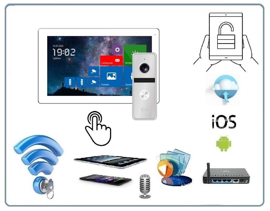 Аудио: ПолудуплексЧувствительность 0.1 люкс (цвет), 0 люкс (подсветка вкл.) Тип дисплея Ёмкостной ЖК IPS (super fine TFT) Диагональ дисплея 10.1” Мелодии 12 (индивидуальная для каждой панели)