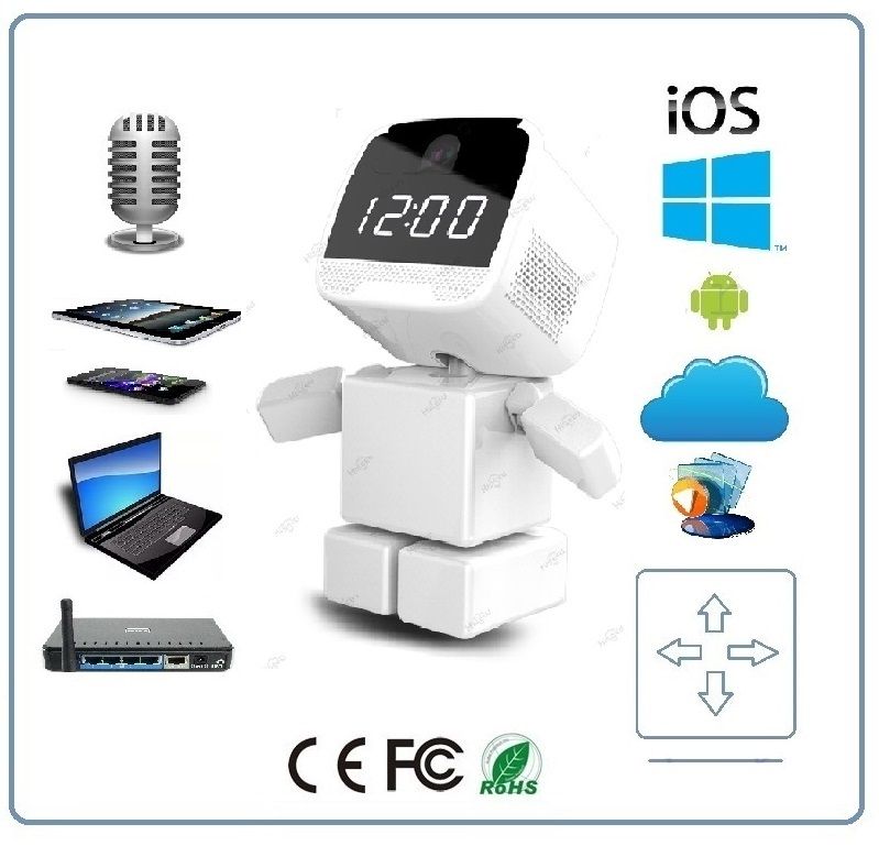 DE-WMrobot-clock Видеоняня WiFi-LAN видеокамера моторизированная с DVR, HD 960 p (cam360)