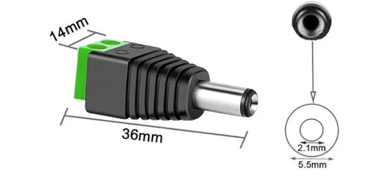 Согласование DC разъема камеры с любым кабелемРазъём питания - штекер DC 2.1/5.5 мм