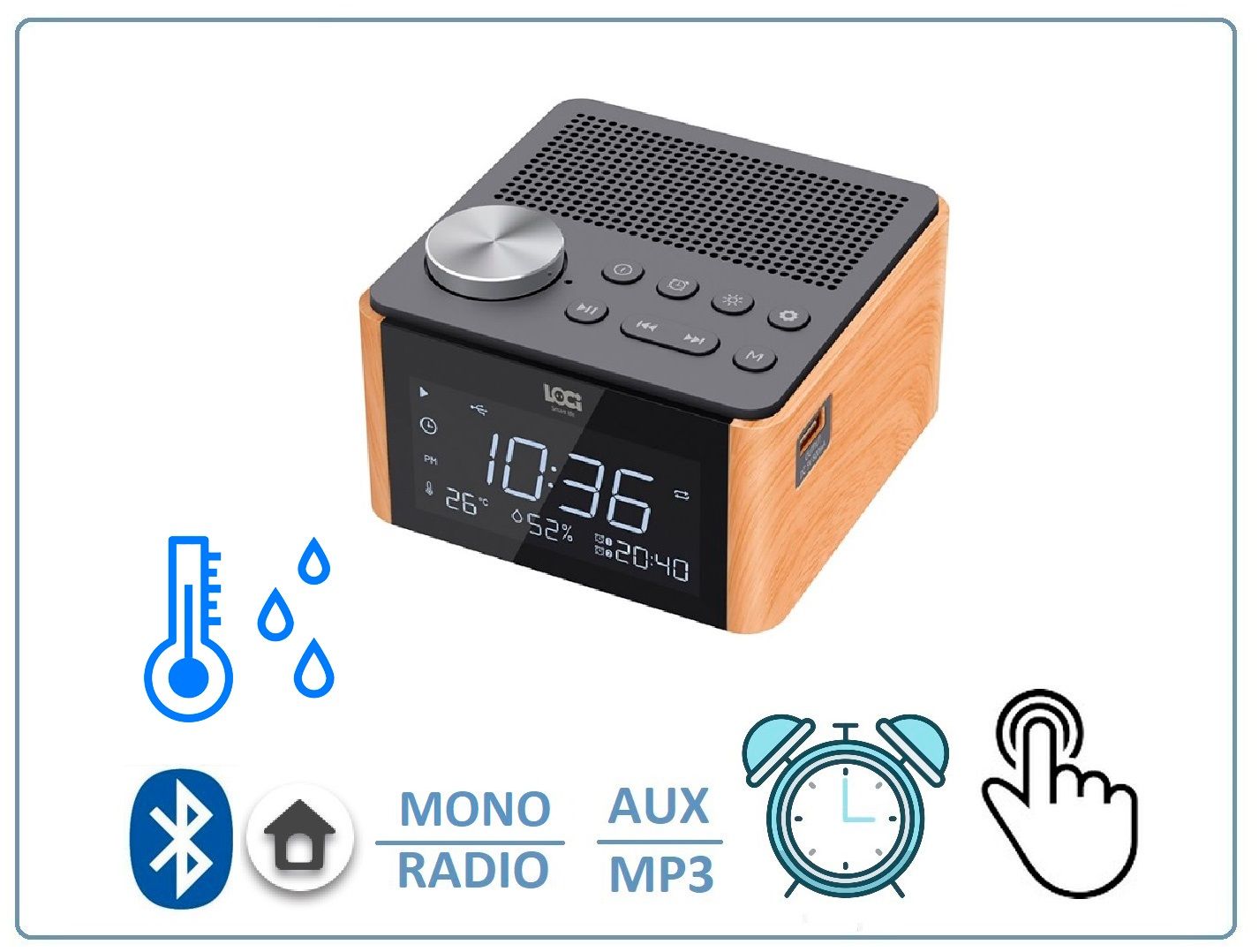 Домашняя метеостанция с датчиком температуры и влажности LOCI H70 - Bluetooth колонка СТЕРЕО, с информатором времени/будильник, радио FM