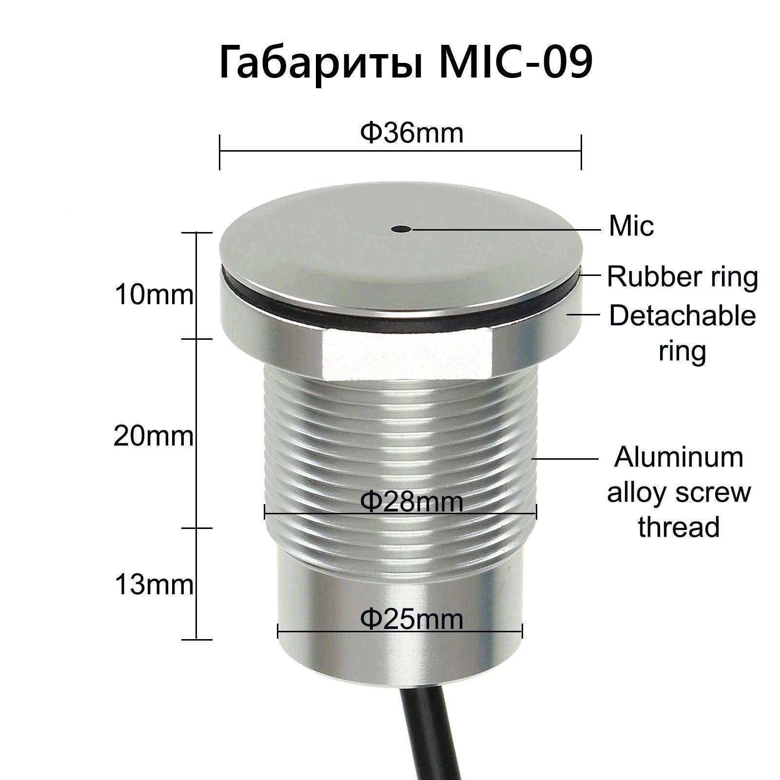 Подключение микрофона — через кабель (800 мм) концы под пайку