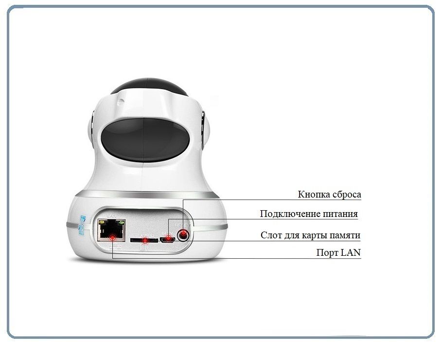 Беспроводная WiFi IP-камера с мегапиксельным разрешением разработана для видеонаблюдения внутри помещений и для мониторинга по локальной сети или через интернет. Устройство имеет слот для microSD-карты, обеспечивающей хранение записей и скриншотов. IP-камера оснащена 1-мегапиксельным СMOS-сенсором Omnivision с разрешением 1280x720 при 25 кадрах в секунду. Также камера имеет встроенную инфракрасную подсветку для ночного наблюдения на расстоянии до 15 метров. Для реализации функции двухсторонней аудиосвязи камера оснащена встроенными микрофоном и динамиком. Благодаря поворотному механизму может обеспечивать обзор с различных углов обзора. Для альтернативной работы и настройки по сети камера имеет обычный проводной Ethernet интерфейс. Для удалённой работы камера поддерживает облачный сервис P2P. Питание камеры осуществляется от блока питания 5 В. напряжением.