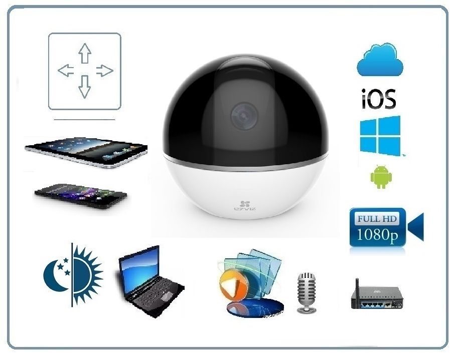 EZVIZ C6TС моторизированная WiFi/LAN видеоняня с DVR. Full HD 1080p