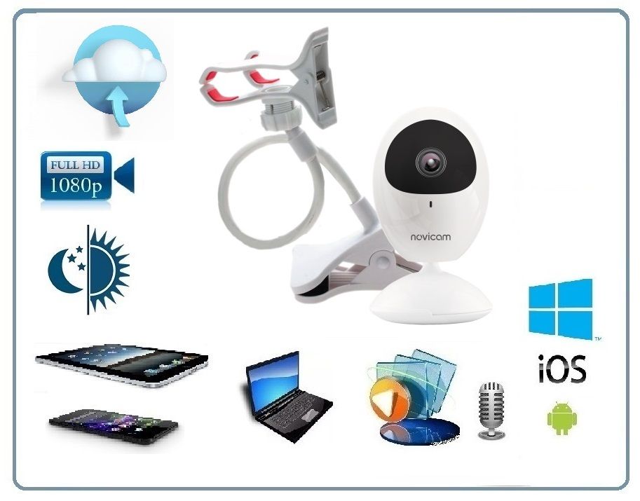 Novicam EVA внутренняя мини Wi-Fi видеокамера 2 Мп с кронштейном. с DVR. 2Mp Full HD (iVMS) (Версия: 4486)