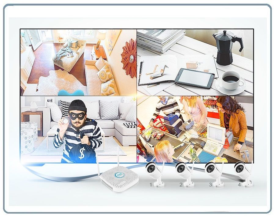 Качество картинки 1080p Full HD. Дальность соединения с беспроводными видеокамерами по прямой видимости до 100 метров.