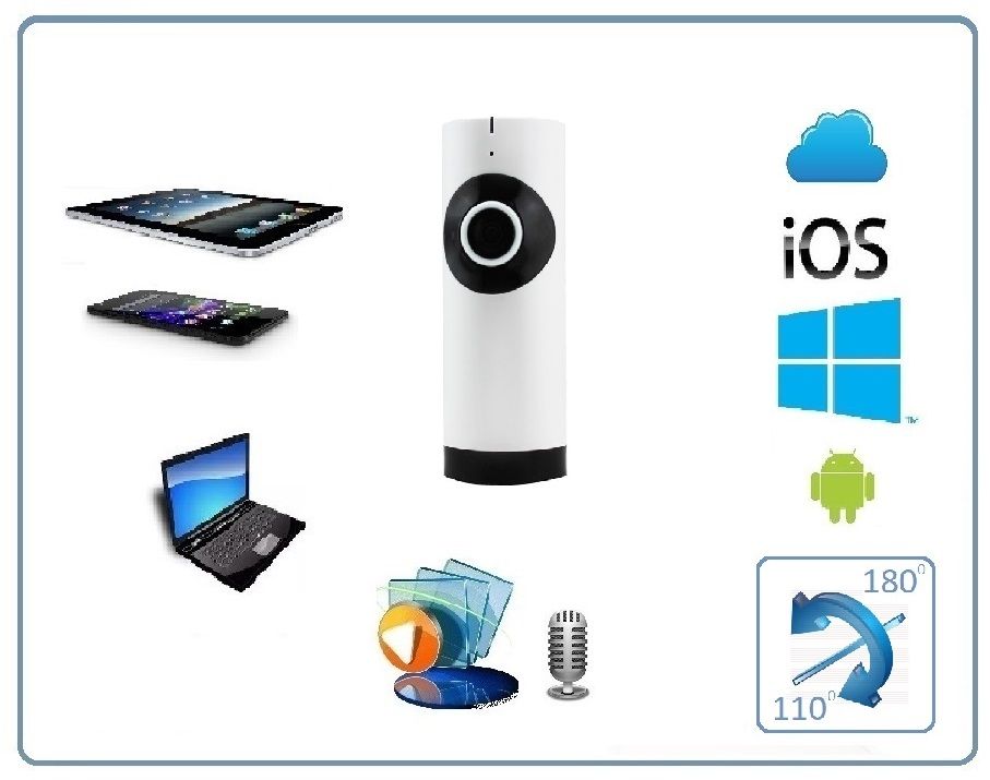 WiFi видеоняня/видеокамера с уникальной технологией объектива Рыбий глаз. Угол обзора такого объектива составляет по горизонтали 180 градусов, а по вертикали 110. Встроенный софт мобильного приложения позволяет просматривать в обычном режиме, без искажений всю зону осмотра. Режим панорамирования распространяется на всё записанное видео и сделанные фото. Вы видите всё и с увеличением в хорошем качестве (пожалуйста посмотрите видеоролик). Запись видео и аудио непосредственно производится на изделие на микро СД карту памяти (при заказе выбирайте в разделе аксессуары). Например - карта памяти в 32 Гб обеспечивает архив в 5 дней. Интерком связь с активным подавлением шума. Ночное видение. Встроенный детектор движения. Сервис P2P (доступ из любой точки мира посредством интернет связи). Совместимость с ОС IOS, Android. Просмотр через ПК по локальной сети (ОС Windows).