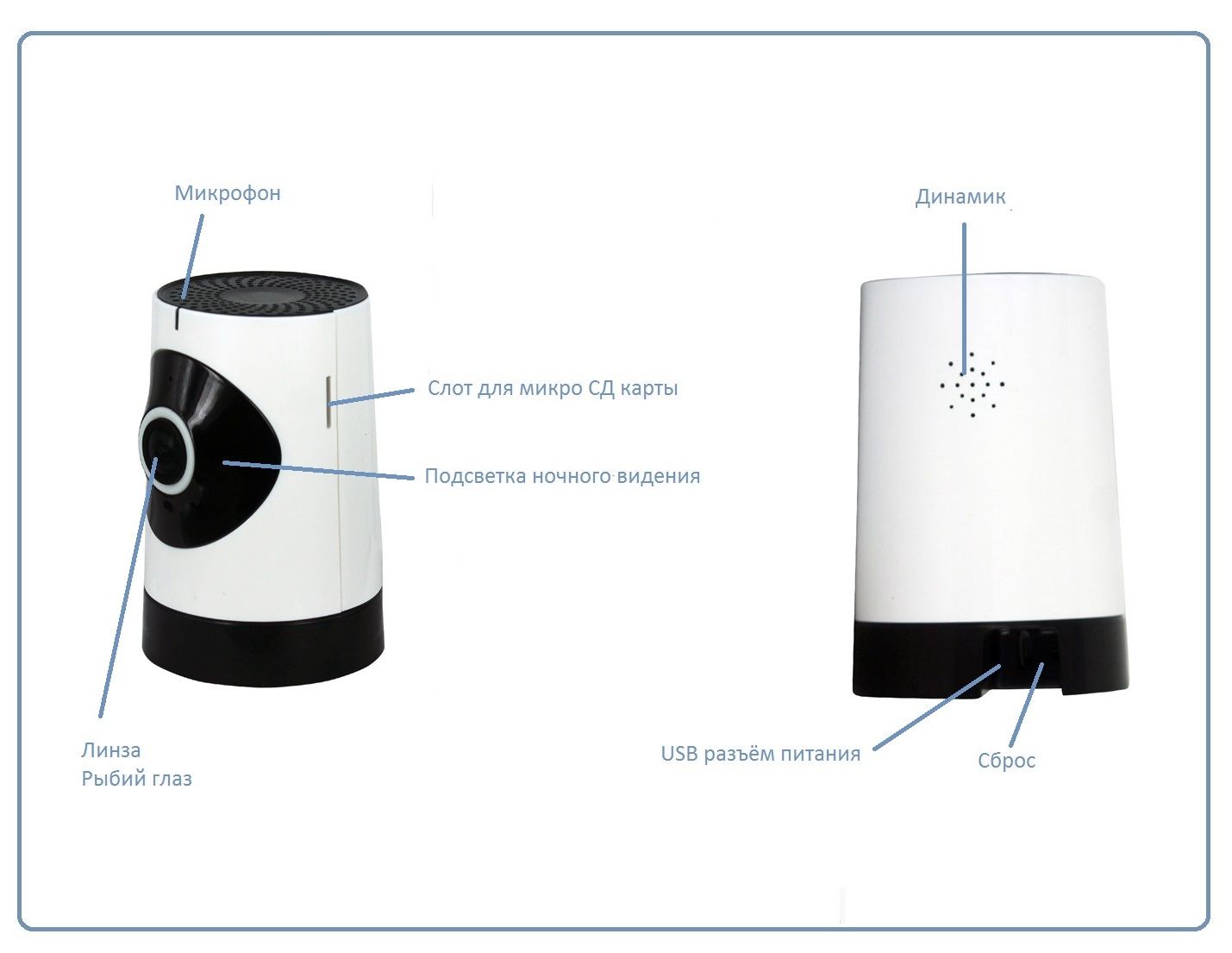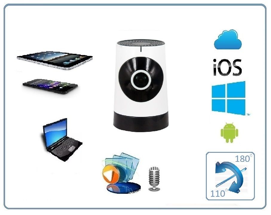WiFi видеоняня/видеокамера с уникальной технологией объектива Рыбий глаз. Угол обзора такого объектива составляет по горизонтали 180 градусов, а по вертикали 110. Встроенный софт мобильного приложения позволяет просматривать в обычном режиме, без искажений всю зону осмотра. Режим панорамирования распространяется на всё записанное видео и сделанные фото. Вы видите всё и с увеличением в хорошем качестве (пожалуйста посмотрите видеоролик). Запись видео и аудио непосредственно производится на изделие на микро СД карту памяти (при заказе выбирайте в разделе аксессуары). Интерком связь с активным подавлением шума. Ночное видение. Встроенный детектор движения. Сервис P2P (доступ из любой точки мира посредством интернет связи). Совместимость с ОС IOS, Android. Просмотр через ПК по локальной сети (ОС Windows).