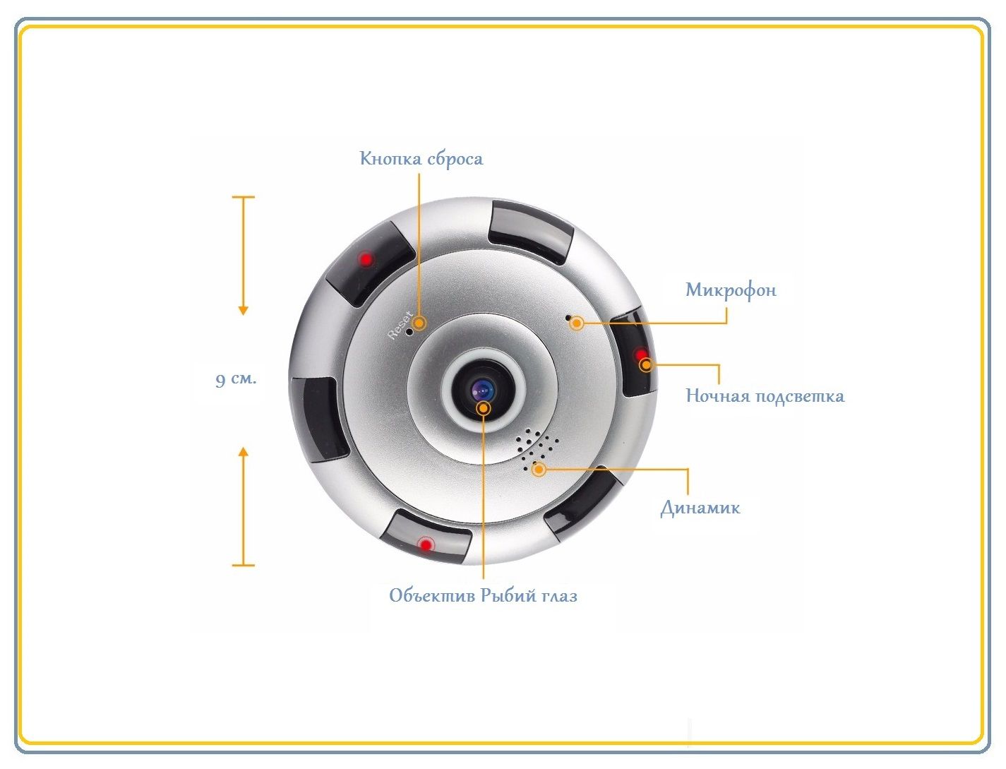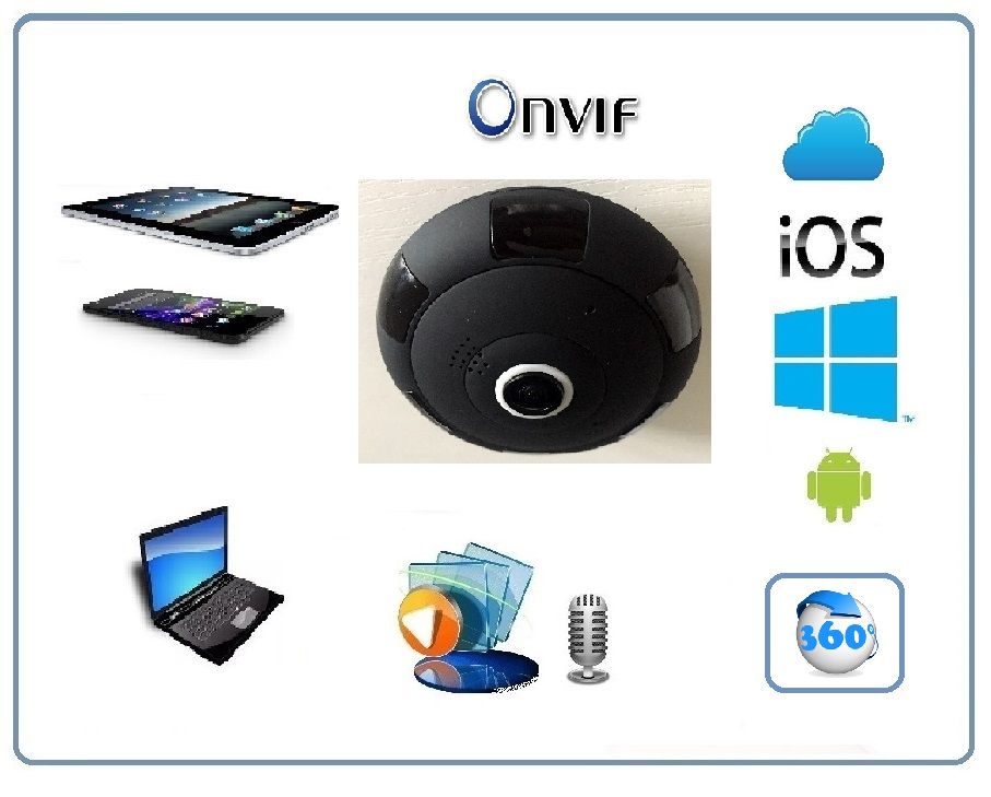 WiFi видеоняня/видеокамера с уникальной технологией объектива Рыбий глаз. Угол обзора такого объектива составляет 360 градусов. Эту модель можно расположить на потолке или стене. Видит всё в зоне плоскости установки 360 градусов вокруг. Встроенный софт мобильного приложения позволяет просматривать в обычном режиме, без искажений всю зону осмотра в 5 режимах. Вы видите всё и с увеличением в хорошем качестве. Запись видео и аудио непосредственно производится на изделие на микро СД карту памяти (при заказе выбирайте в разделе аксессуары). Интерком связь с активным подавлением шума. Ночное видение. Встроенный детектор движения. Сервис P2P (доступ из любой точки мира посредством интернет связи). Совместимость с ОС IOS, Android. Просмотр через ПК по локальной сети (ОС Windows). Протокол ONVIF позволяет интегрировать WiFi видеокамеру в IP видеорегистратор.