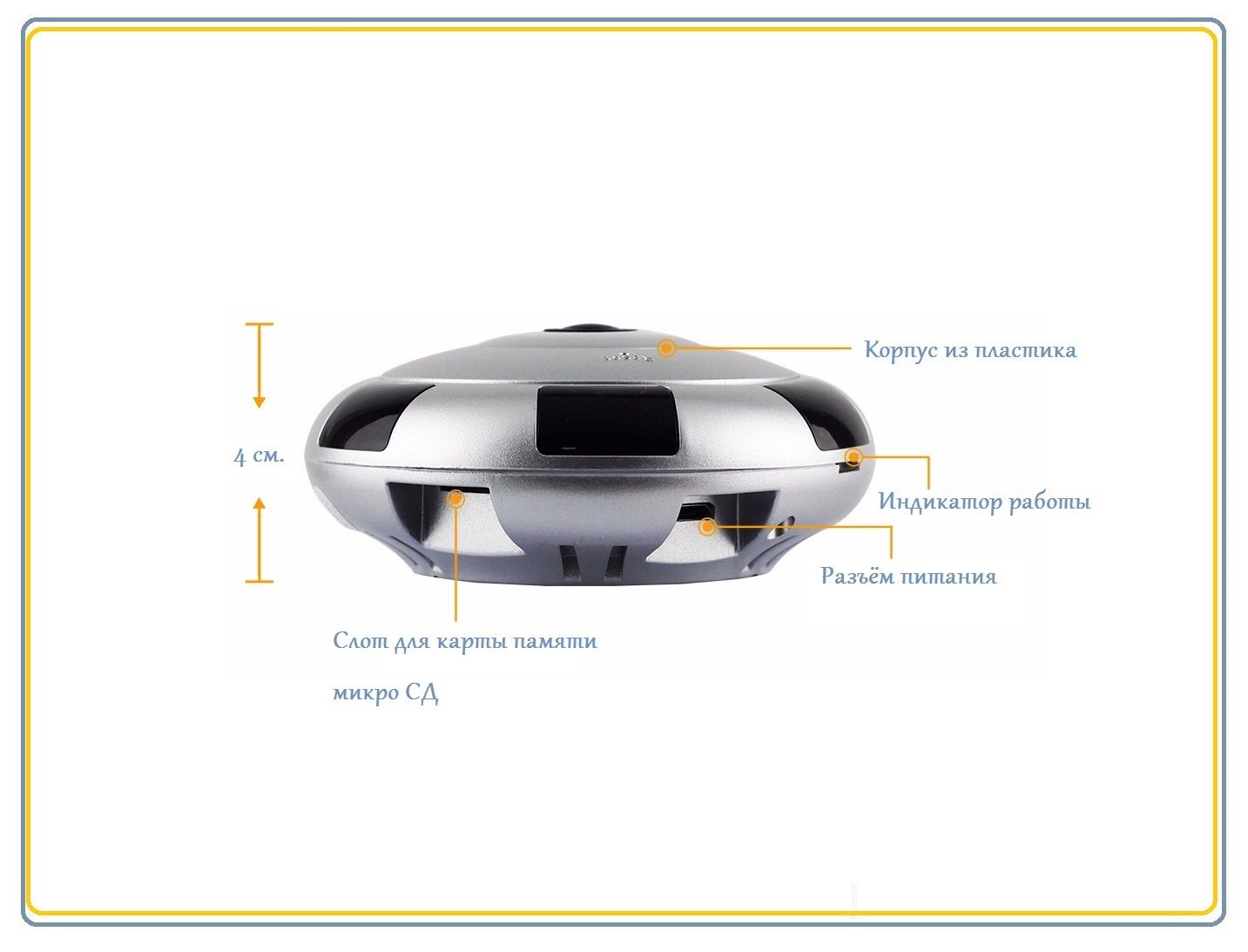 - Аудио вход: - встроенный микрофон 38dB;