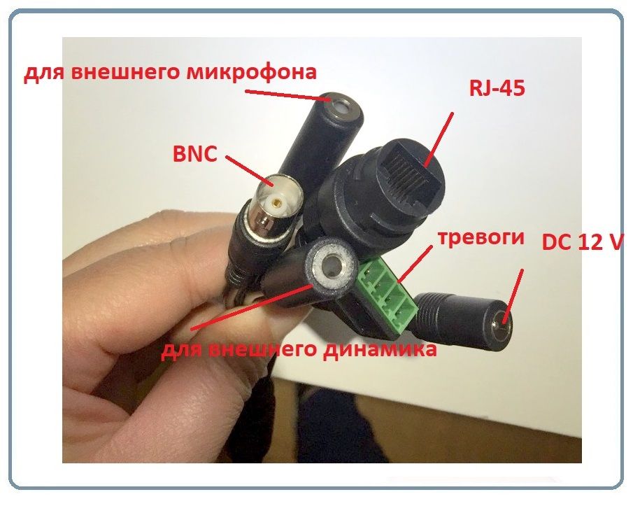 RJ45 (10/100М), 2x3.5mm, alarm, BNC, порт питания |