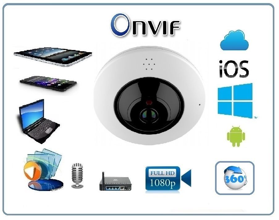 Панорамная беспроводная (Wi-Fi/LAN) видеокамера для охранного видеонаблюдения IP-367FE-2M WIFI/LAN. Картинка Full HD 1080p. 2Mp. Просмотр с мобильного устройства по всему миру (сервис p2p). На борту встроенный видеорегистратор (поддержка карт микро СД до 128 Гб). Ночное видение до 20 метров.