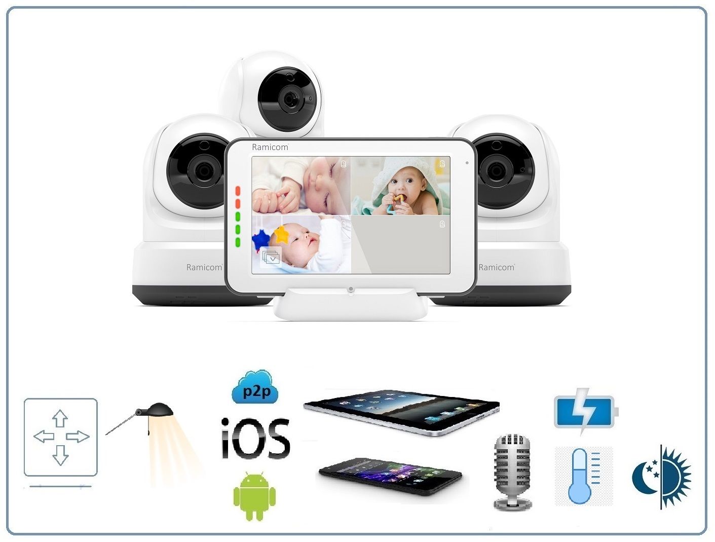 Видеоняня Ramicom VRC250, монитор 5" с 3 поворотными видеокамерами, HD