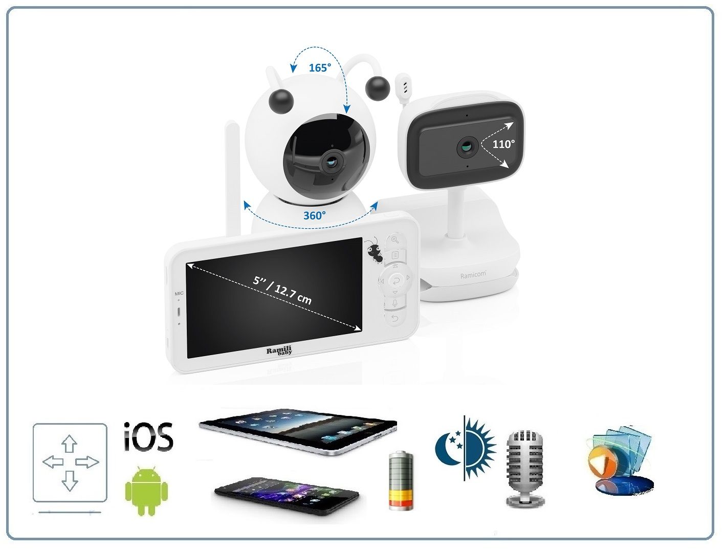- HD 720p высокое качество видеоизображения на дисплее родительского блока с диагональю 12,7 см / 5 дюймов.