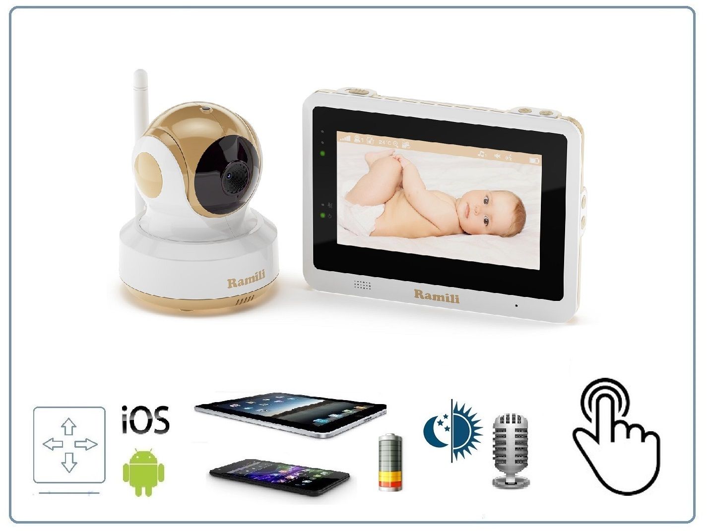 Wi-Fi видеоняня Ramili Baby RV1500 с сенсорным монитором и одной поворотной видеокамерой, просмотр с моильных устройств., HD