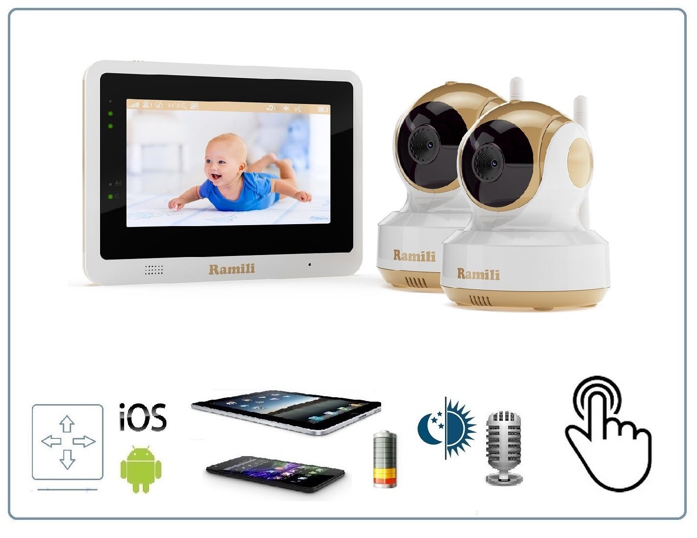 Wi-Fi видеоняня Ramili Baby RV1500x2 с сенсорным монитором и двумя поворотными видеокамерами, просмотр с моильных устройств., HD