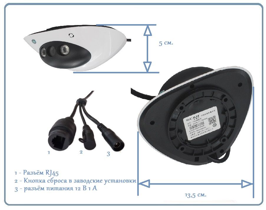 - Объектив - 3,6 мм, угол обзора 74 градуса;