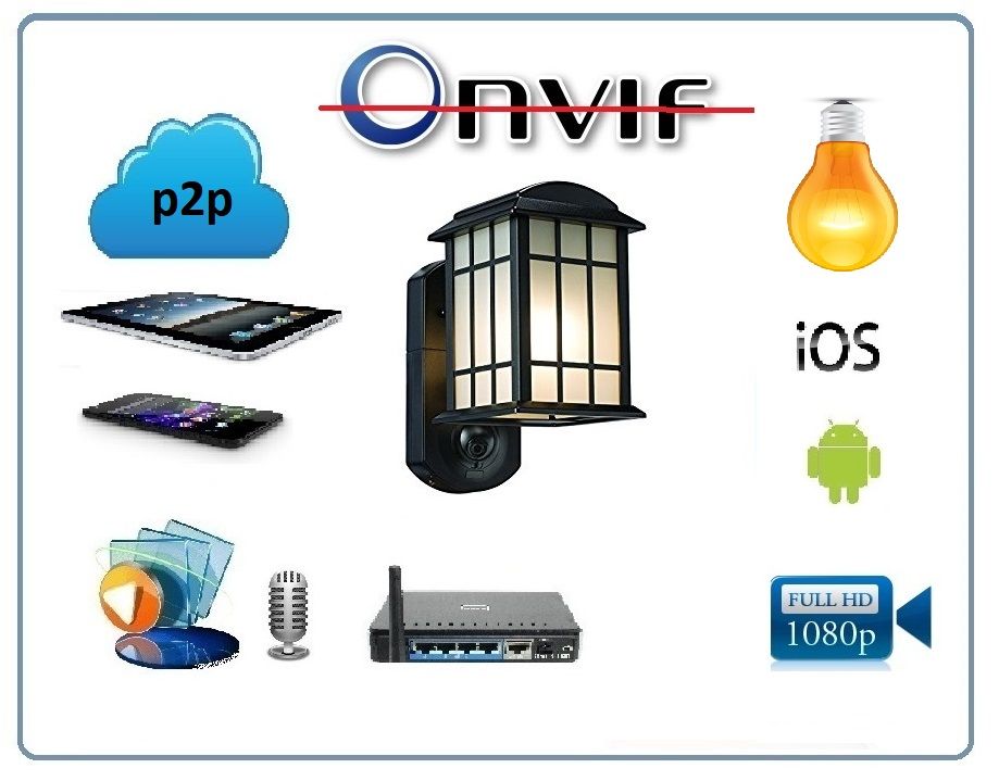 Уличная WiFi - LAN видеокамера с ночным видением и картинкой Full HD 1080p не только выполняет роль охранной видеокамеры, но и ночного дизайн светильника, который может включаться по заданным вами параметрам, а так же в случае срабатывания детекции движения от датчика движения.