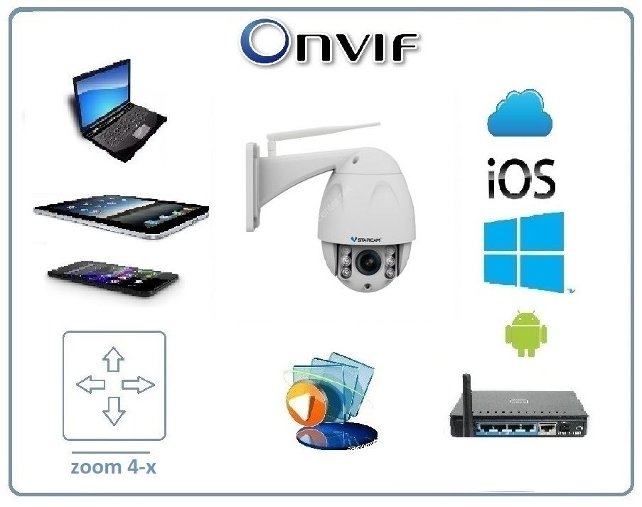 VSTARCAM C8833WIP-x4 (C8834-x4) работает по протоколу ONVIF и доступна для записи на IP видеорегистраторы.
