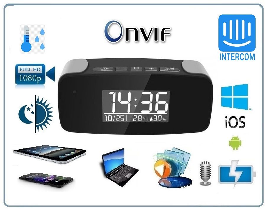 WiFi видеоняня/охранная видеокамера с информатором времени, температуры и влажности в помещении, с DVR, Full HD (TinyCam)