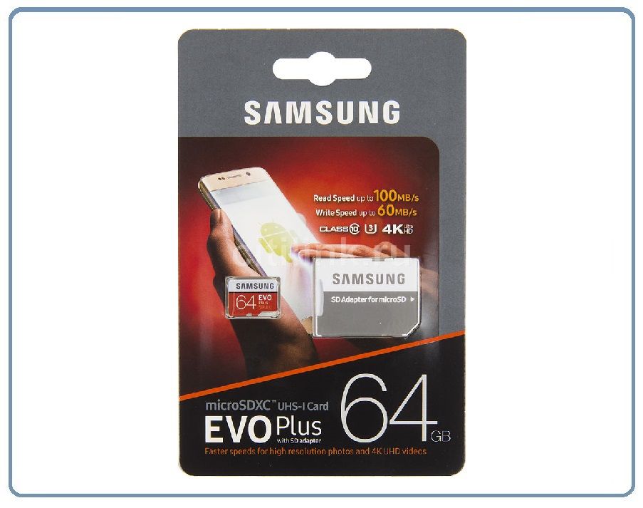 Карта памяти 64ГБ Samsung "EVO Plus MB-MC64GA/RU" microSD XC UHS-I Class10 + адаптер
