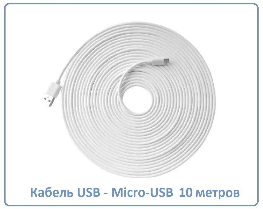 Кабель для питания Wi-Fi видеокамер USB - Micro-USB, длина 10 м.