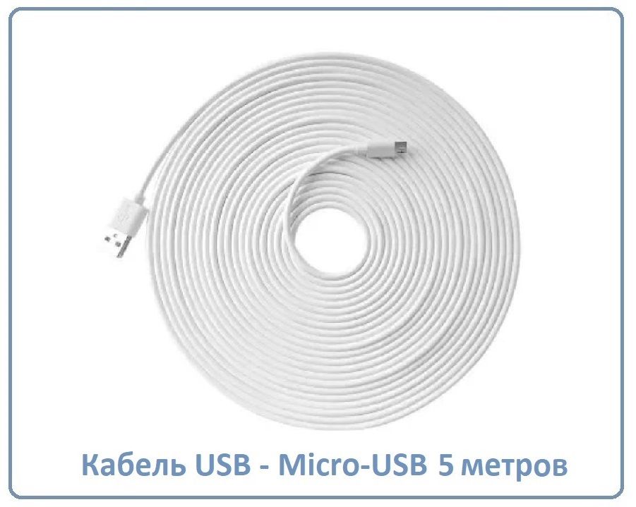 Кабель для питания Wi-Fi видеокамер USB - Micro-USB, длина 5 м.
