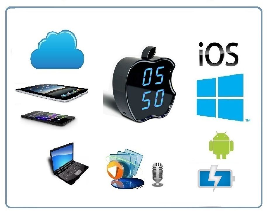 Видеоняня с интерфейсом работы по WiFi каналу. Уникальное исполнение в виде электронных настольных часов (Apple). Возможность записи на micro SD карту аудио и видео (карта памяти в комплект не входит). Встроенный аккумулятор позволяет автономно работать устройству в течение 2-3 часов. Просмотр и управление с мобильных устройств на базе ОС Android/IOS. Устройство имеет свою WiFi сеть. Вы сможете подключиться к устройству напрямую и работать с ним. После интеграции в Вашу локальную WiFi сеть, будет доступен сервис P2P (Возможность просмотра с любой точки земли через интернет не имея выделенного IP). Ночное видение.
