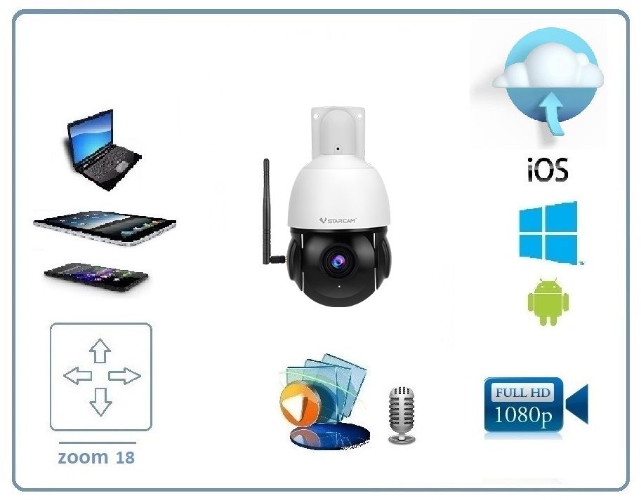 VStarcam C8866Q-х18 уличная поворотная WiFi/LAN видеокамера с DVR. Full HD 4 Мп (zoom 18) до - 25 град.С.