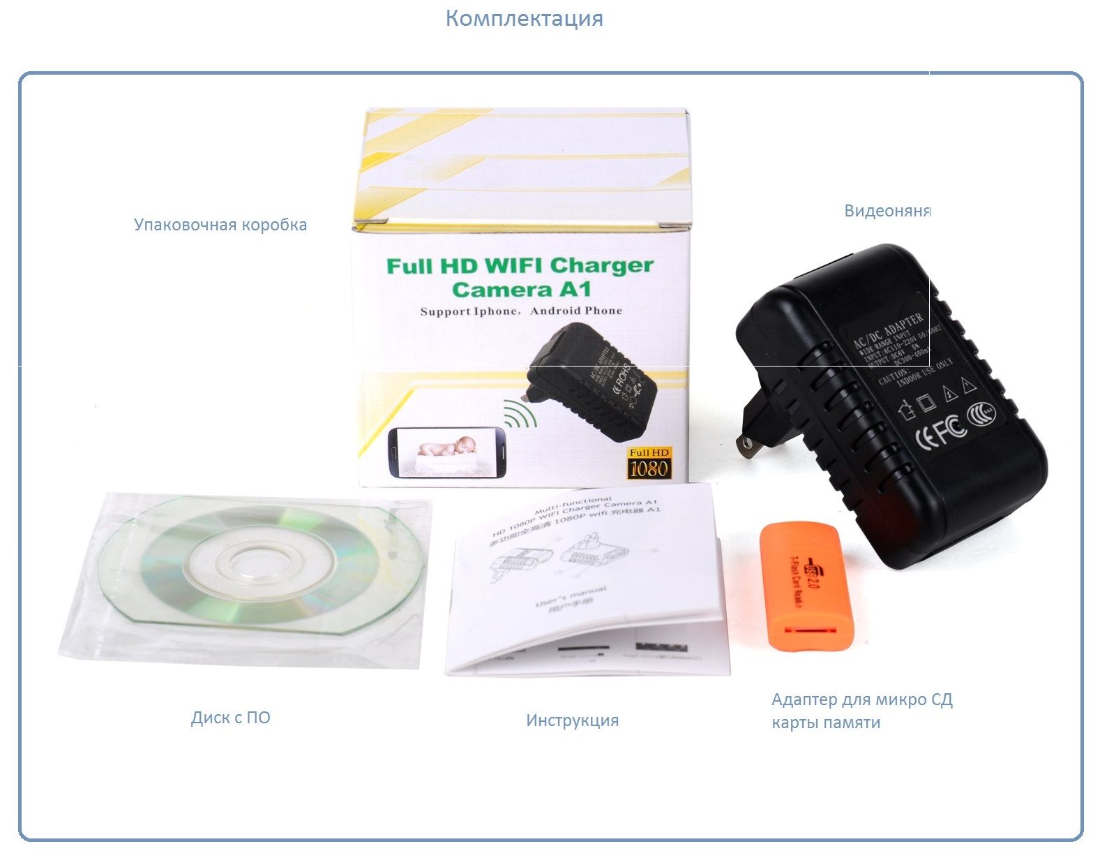 WiFi видеоняня (в виде блока питания) с DVR Full HD (Pro iCam)