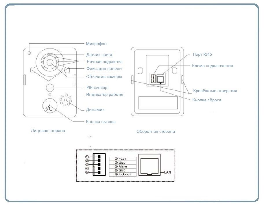 WiFi/LAN вызывная панель видеодомофона, интерком связь с активным подавлением шума, открытие замка через мобильное приложение, VGA. до - 20 град.С.