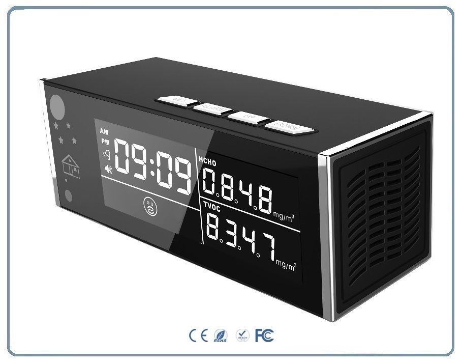 Датчик качества воздуха (HCHO) -ХХО - бесцветный, ядовитый, очень водорастворимый газ с неприятным запахом. Он может испускаться из ряда продуктов в домашних условиях. Было показано, что курение, прессованная древесина и древесностружечная плита являются источниками формальдегида. Воздействие формальдегида может увеличить вероятность заражения раком даже на слишком низких уровнях, чтобы вызвать симптомы. Встроенный датчик качества воздуха HCHO может измерять концентрацию HCHO.