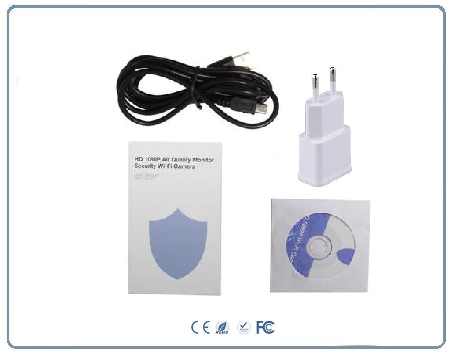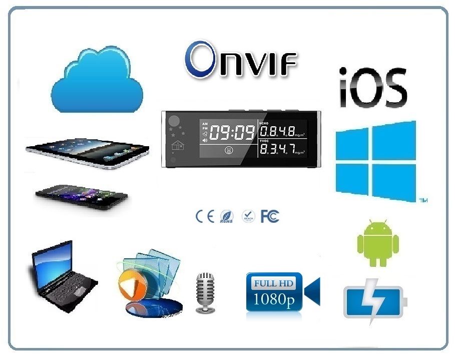 IP видеоняня WiFi (Настольные часы - информатор качества воздуха, охранная видеокамера) с аккумулятором и с DVR, Full HD 1 Mp