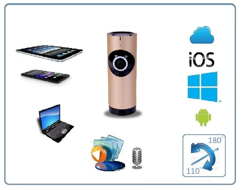 WiFi видеоняня/видеокамера с уникальной технологией объектива Рыбий глаз. Угол обзора такого объектива составляет по горизонтали 180 градусов, а по вертикали 110. Встроенный софт мобильного приложения позволяет просматривать в обычном режиме, без искажений всю зону осмотра. Режим панорамирования распространяется на всё записанное видео и сделанные фото. Вы видите всё и с увеличением в хорошем качестве (пожалуйста посмотрите видеоролик). Запись видео и аудио непосредственно производится на изделие на микро СД карту памяти (при заказе выбирайте в разделе аксессуары). Интерком связь с активным подавлением шума. Ночное видение. Встроенный детектор движения. Сервис P2P (доступ из любой точки мира посредством интернет связи). Совместимость с ОС IOS, Android. Просмотр через ПК по локальной сети (ОС Windows).