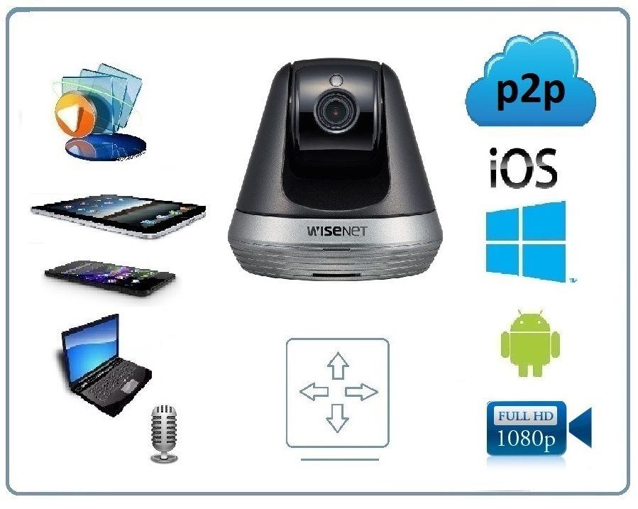 Wisenet SmartCam SNH-V6410PN - Wi-Fi видеоняня/охранная видеокамера, моторизированная с DVR. Full HD