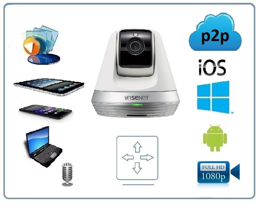 Компактная видеокамера для дома и офиса от известного производителя высококачественной электроники Wisenet SmartCam SNH-V6410PW. Компактная видеокамера, оснащённая всеми необходимыми для комфортного удалённого контроля функциями, подключается к сети Wi-Fi, а наблюдение и управление поворотом камеры осуществляется с помощью мобильного устройства или компьютера из любой точки планеты через интернет. Особенности видеокамеры заключаются в стабильной работе, высоком качестве звука и изображения в формате Full HD 1080p, продвинутом и стабильном приложении с поддержкой уведомлений для iOS, Android, Mac, Windows, а также надёжности и безопасности устройства, гарантированными известным производителем. Пользователю доступна функция выбора до трёх зон в области обзора, в которых будет отслеживаться движение, а также функция автоматического поворота камеры вслед за движением.