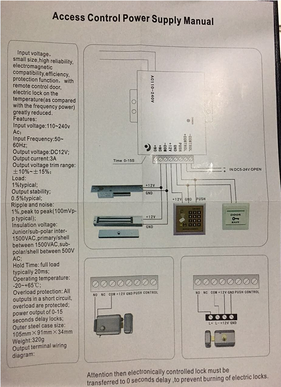 Блок питания с таймером задержки открывания замка для систем контроля доступа, питание и управление электронных 12В замков (электромагнитные, защёлки, электромеханические, клавиатуры управления, считыватели и пр.)